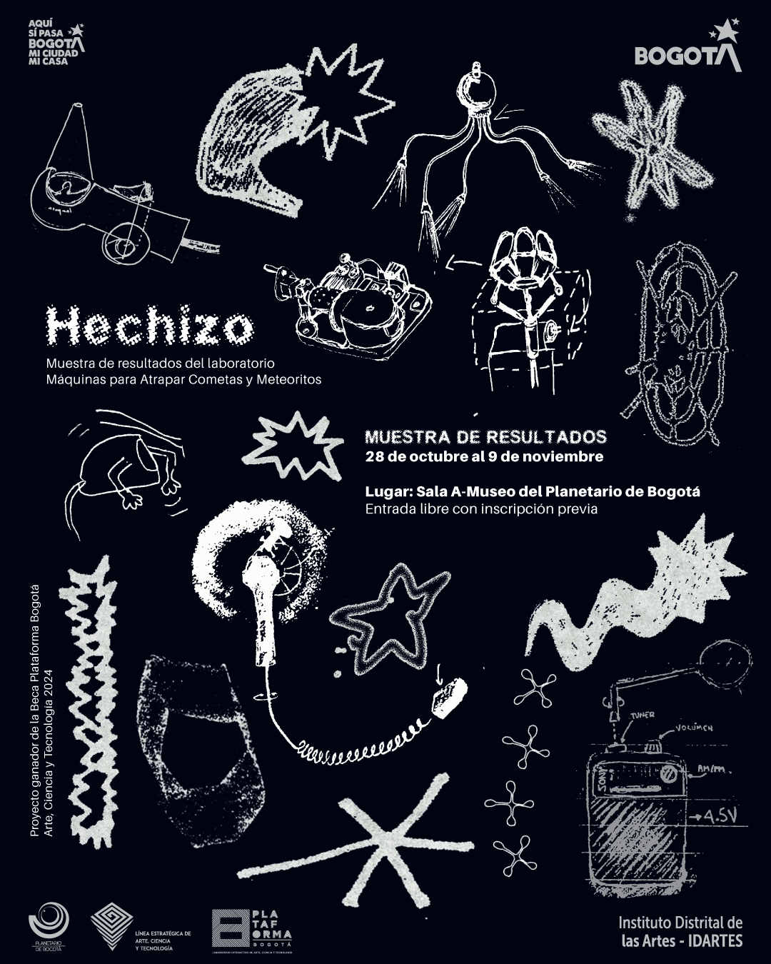 Y en el fondo del universo habita un significado secreto que solo puede comprenderse por medio del rumor de máquinas averiadas. Este pensamiento, sacado de una de las tramas de una novela de Isaac Asimov, da cuenta de la fascinación humana por el cosmos y de la pulsión que guía al laboratorio Máquinas para Atrapar Cometas y Meteoritos: Electrónica Estelar y Reparación Rudimentaria. Ganador de la Beca Plataforma Bogotá – Arte, Ciencia y Tecnología 2024, este proyecto, coordinado por Marianna Velasco, explora cómo los seres humanos se relacionan con la tecnología a través de la construcción...